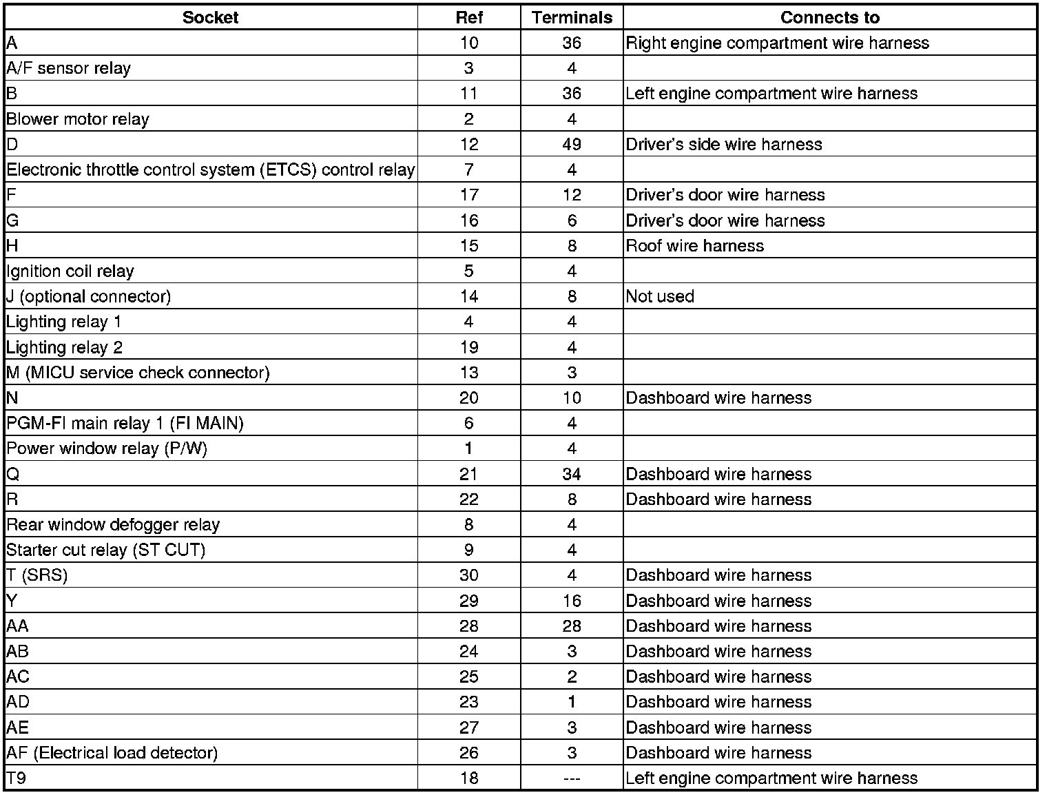 Fuse/Relay Box Connector Locations