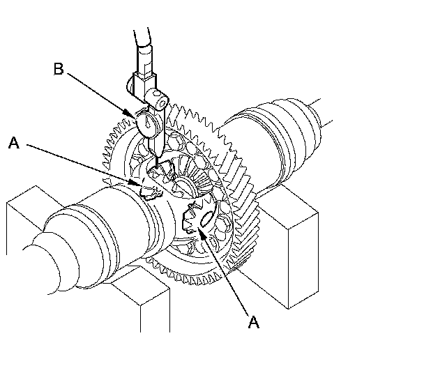 2. Check the backlash of the pinion gears (A) using a dial indicator (B).