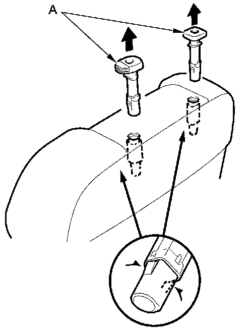 14. Pinch the tabs on the ends of the head restraint guides (A), and remove them from the seat-back.