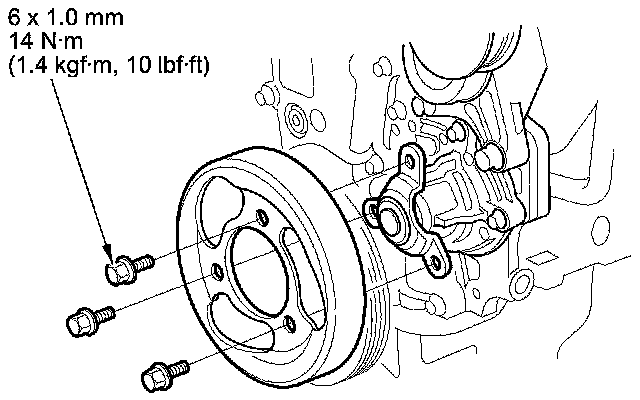 11. Install the water pump pulley.