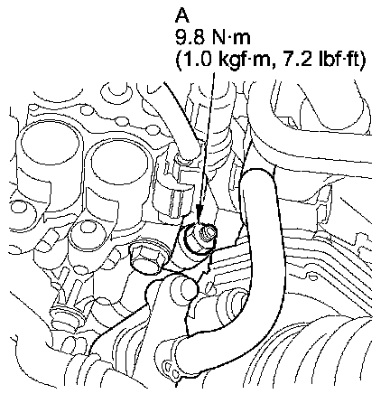 5. Remove the drain bolt (A) from the rear side of the engine block.