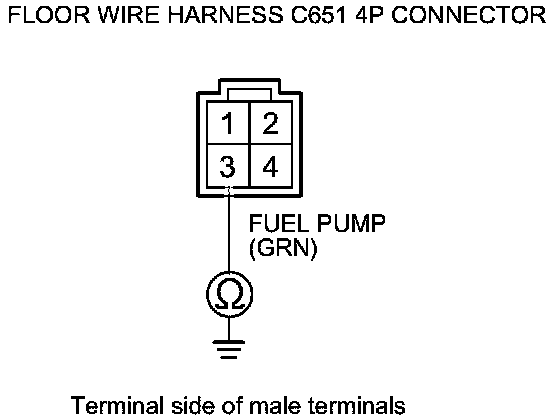 57. Check for continuity between floor harness C651 4P connector terminal No. 3 and body ground.