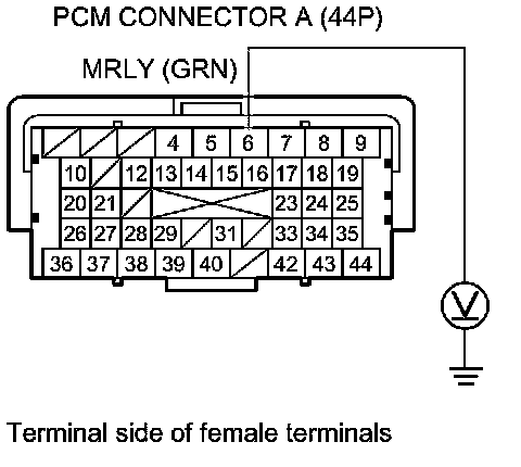 62. Measure the voltage between PCM connector terminal A6 and body ground.