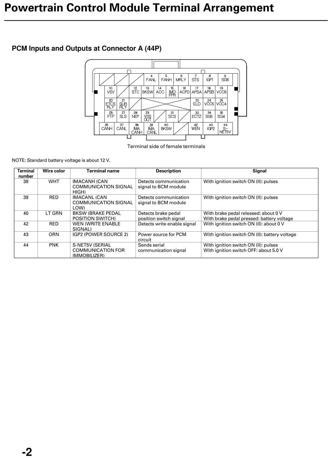 PCM Inputs And Outputs At Connector A