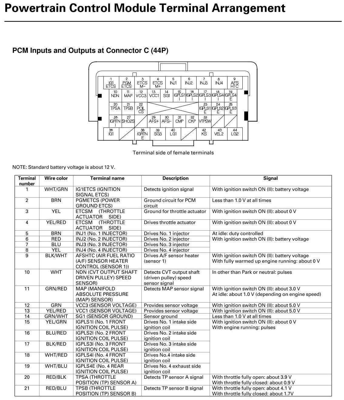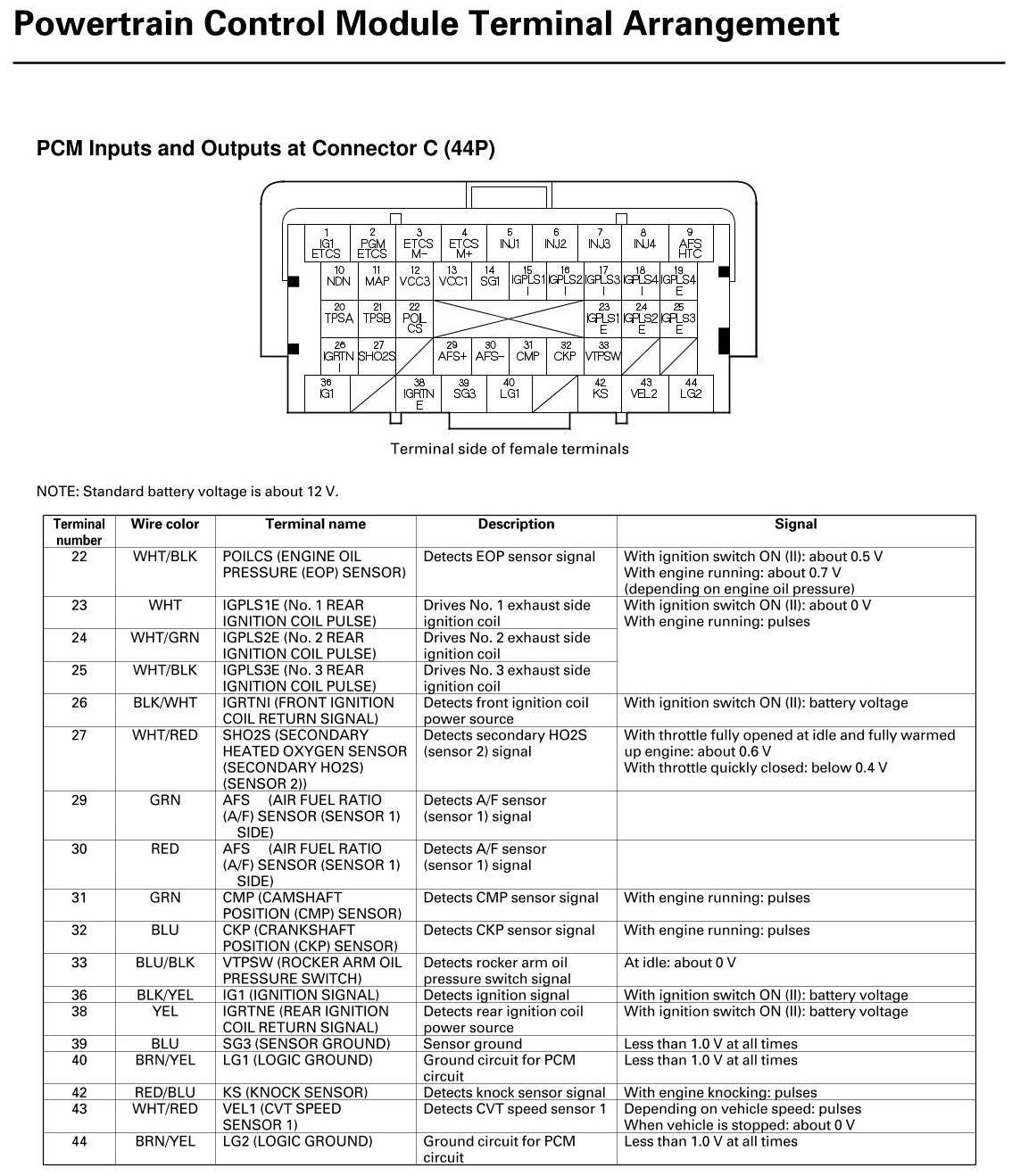 PCM Inputs And Outputs At Connector C