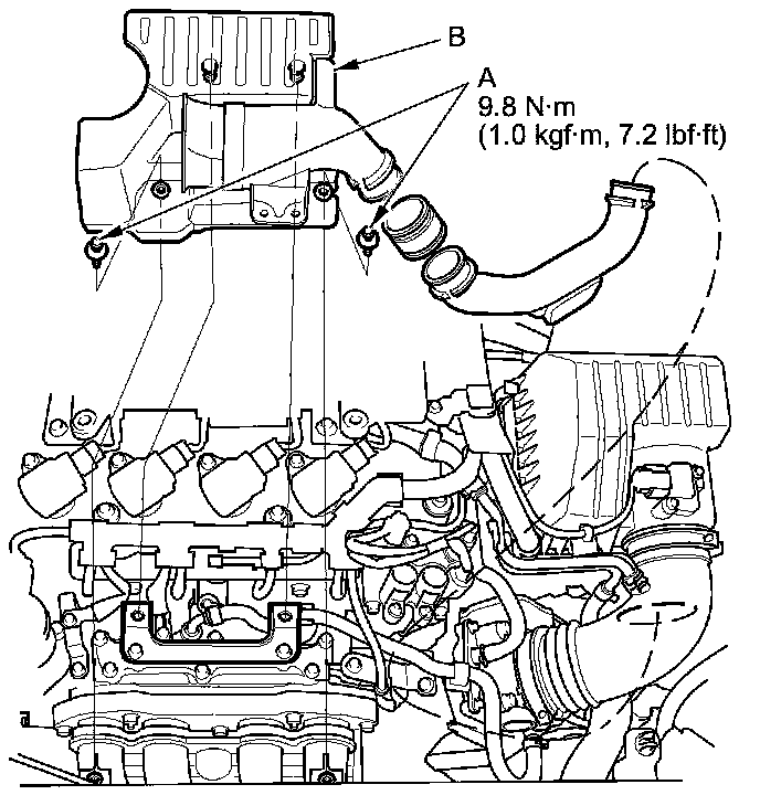 3. Remove the intake air resonator (B).