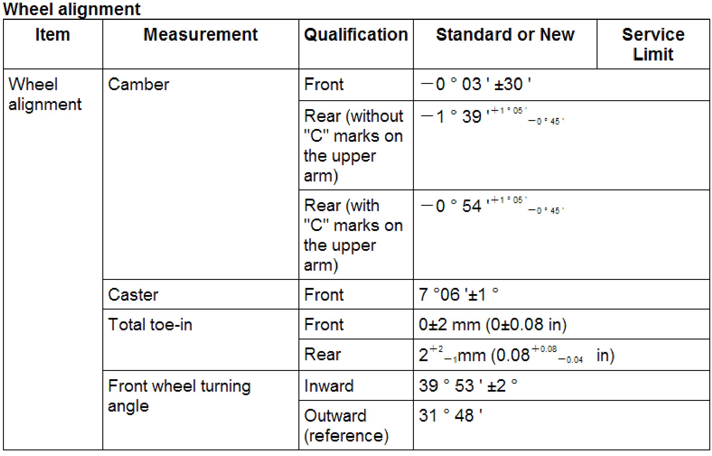 Wheel Alignment Specifications