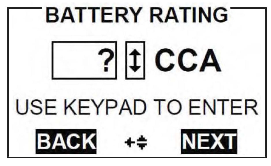12. Enter the battery's CCA, and press NEXT to begin the battery testing.