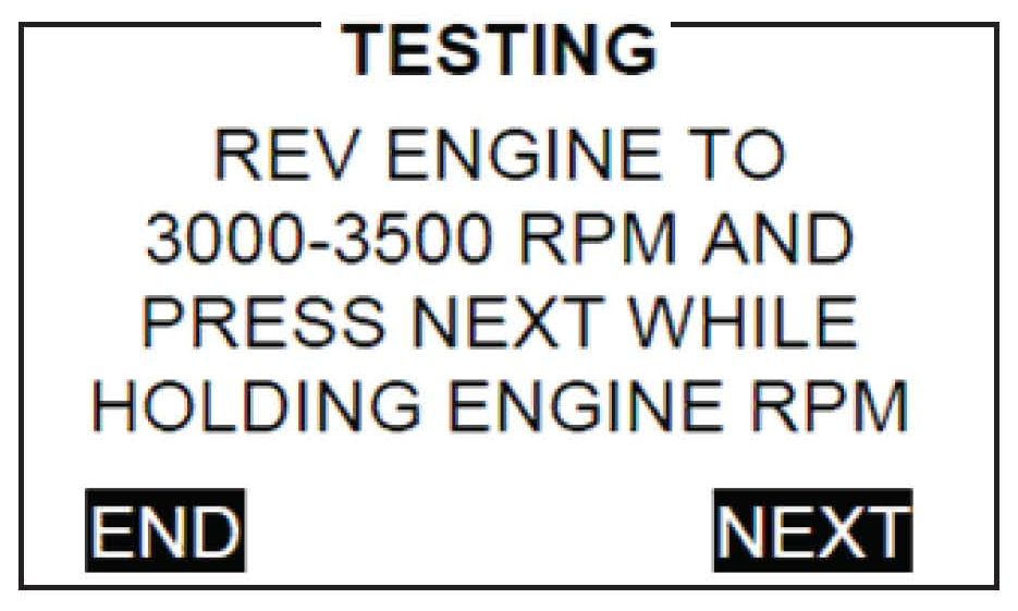 If you do not rev the vehicle within the first 10 seconds, or the tool cannot detect the engine speed, you will have to rev the engine to 3,000- 3,500 rpm, hold at that rpm level, and hit NEXT to continue.