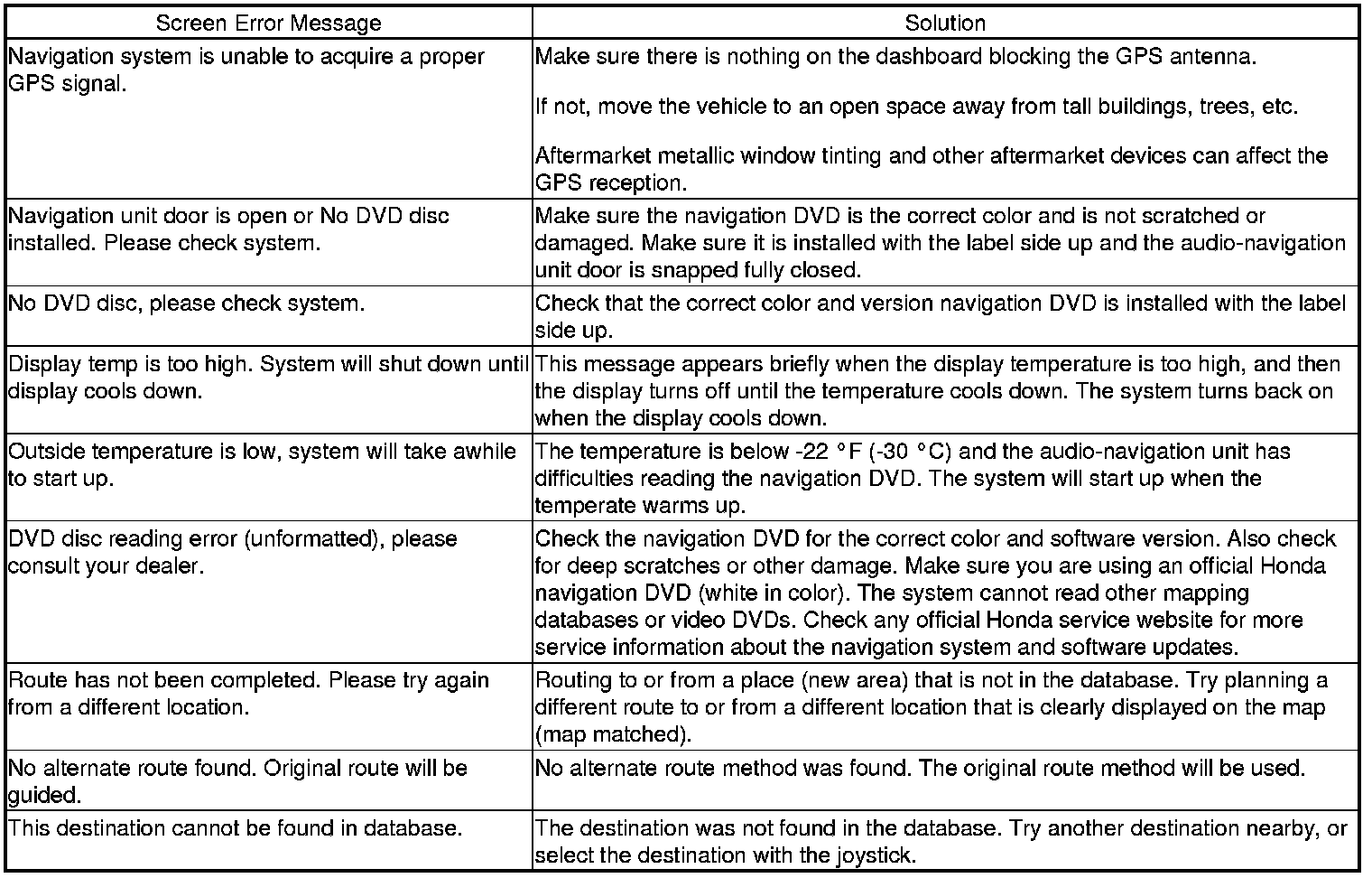 You may also see this error if a customer inserted a newer navigation DVD into their unit. This is why it is never recommended that you show a customer a new navigation DVD by inserting it into their current vehicle. Once the newer software is uploaded, they will see an error message when they reinstall their original navigation DVD.