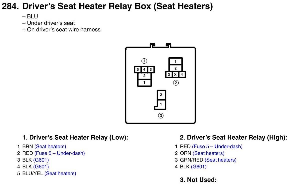 Seat Heater Relay Box, Drivers Connector View (Seat Heaters)