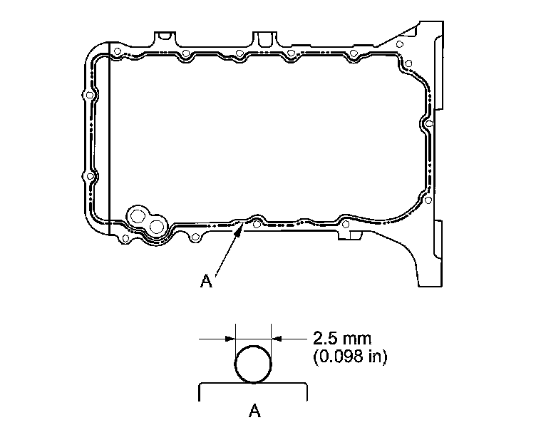 - Apply a 2.5 mm (0.098 in) diameter bead of liquid gasket along the broken line (A).