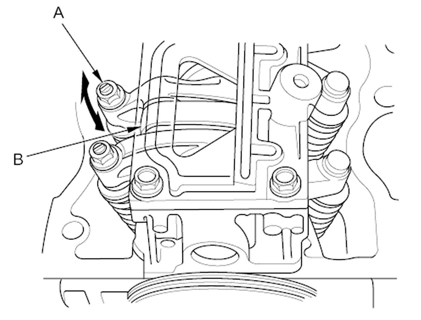 - If intake secondary rocker arm (A) and secondary rocker arm (B) move together, go to step 9.