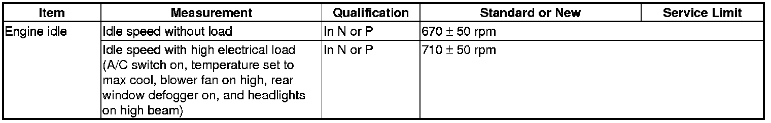 Idle Speed: Specifications