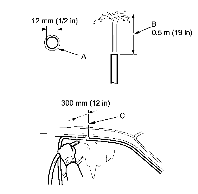 - Hold the hose about 300 mm (12 in) away from the door (C).