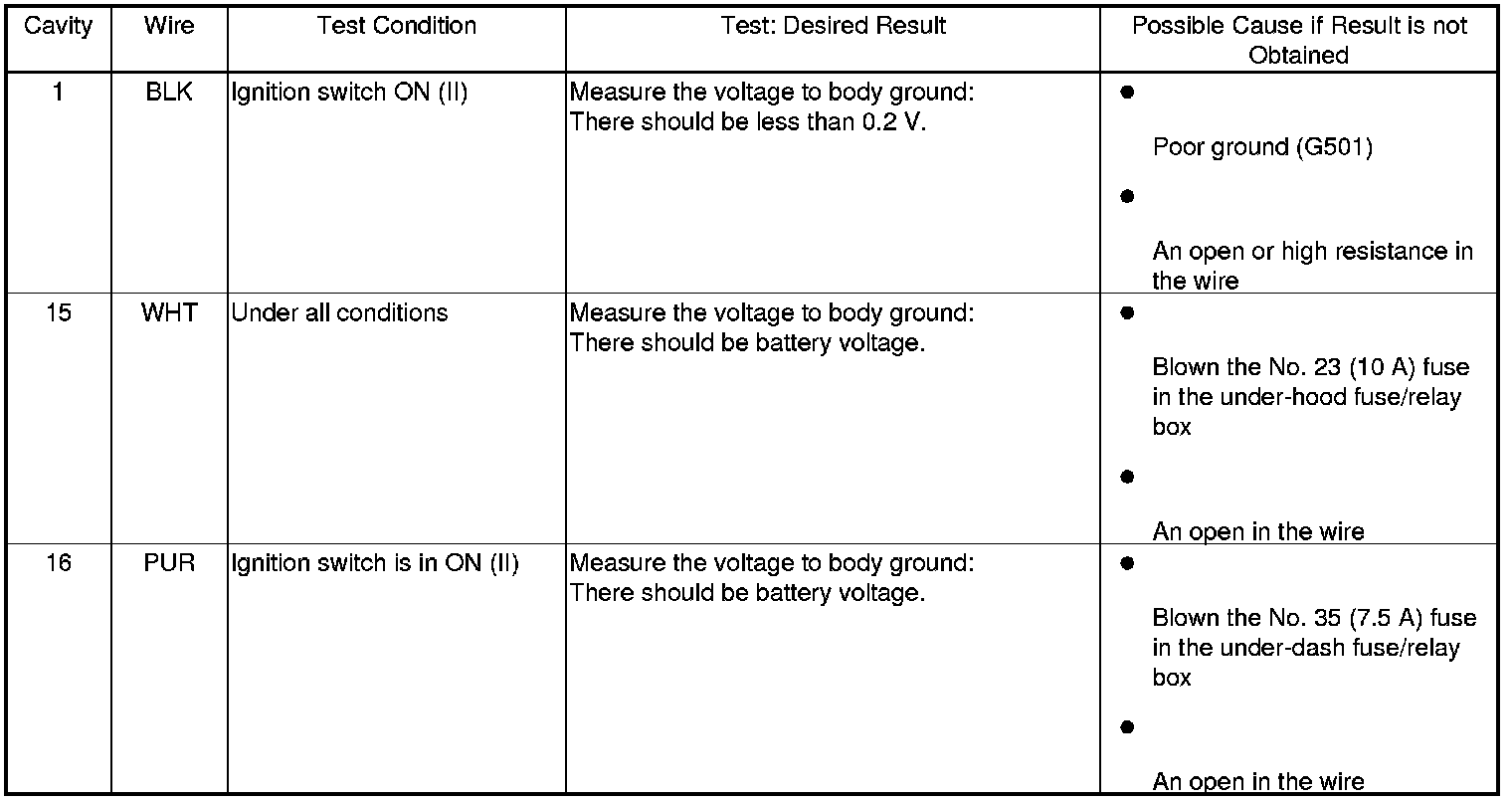 6. Disconnect the 28P connector again, and make this input test at the connector.