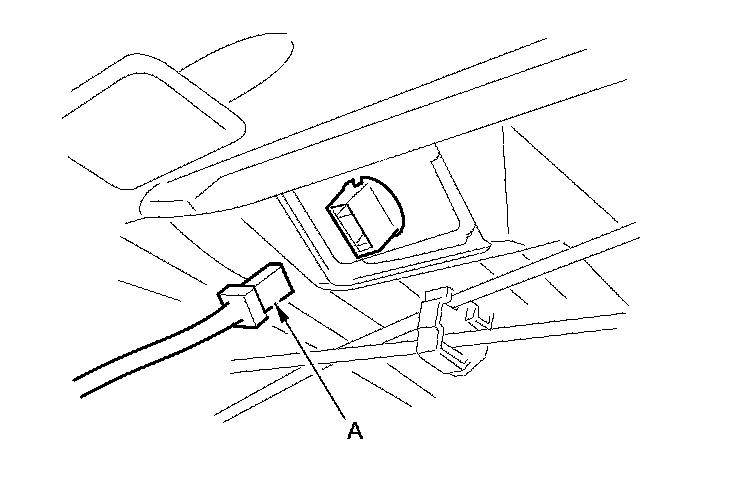 2. From the trunk compartment, disconnect the high mount brake light connector (A).