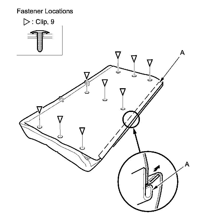 4. Release the lower hook strip (A), and detach the clips.