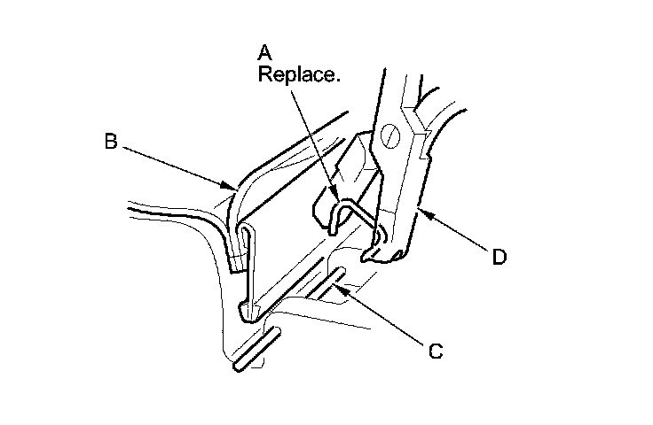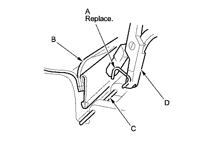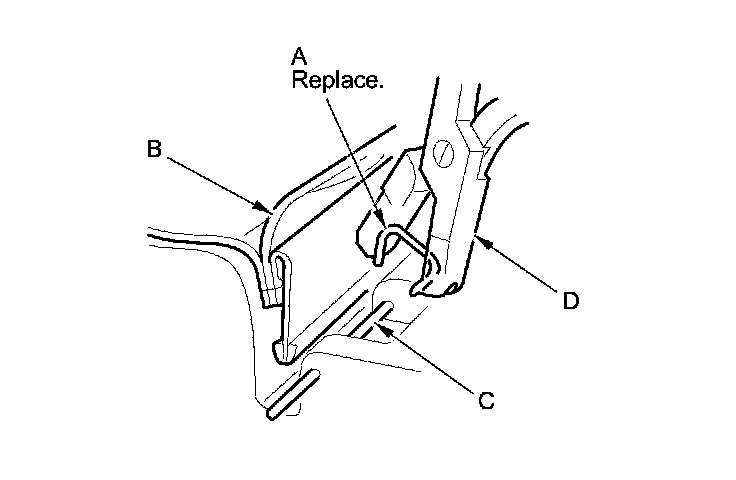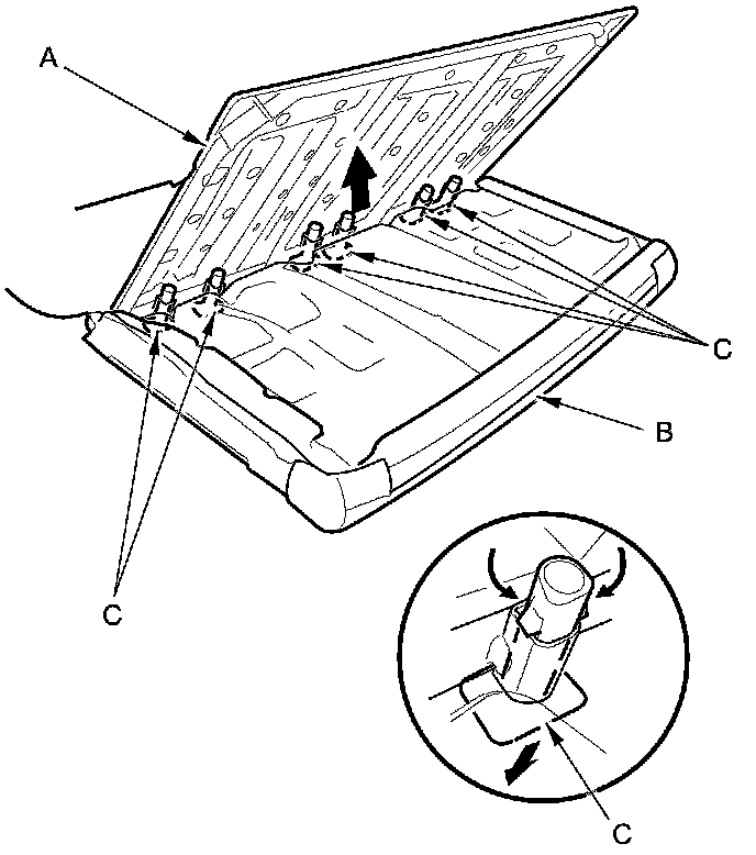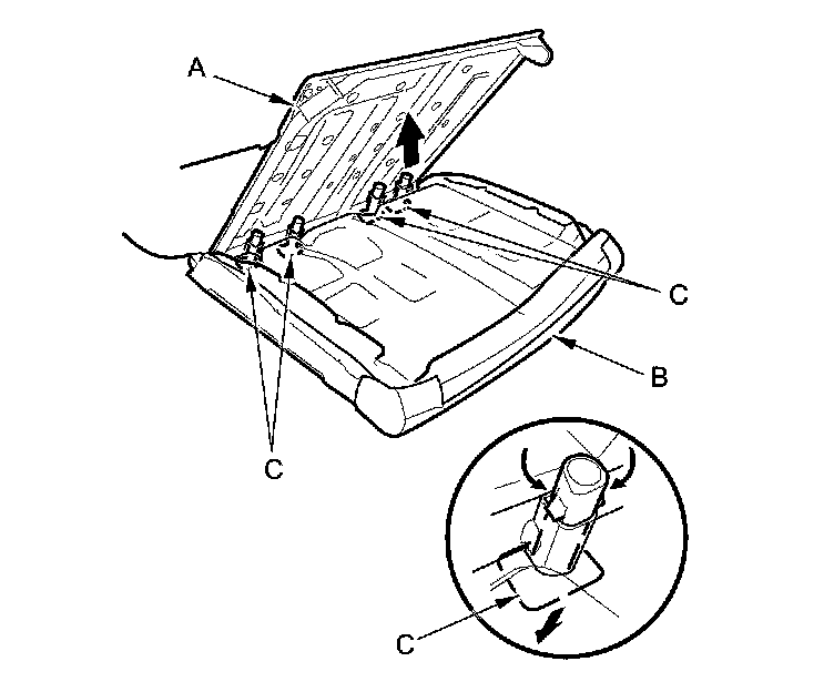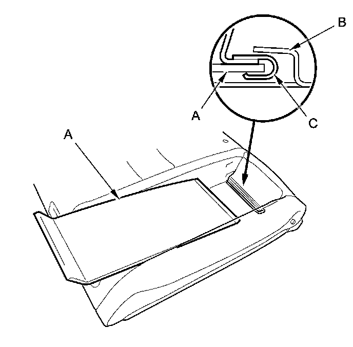 6. Release the lower hook strip (A), and detach the clips (B, C).