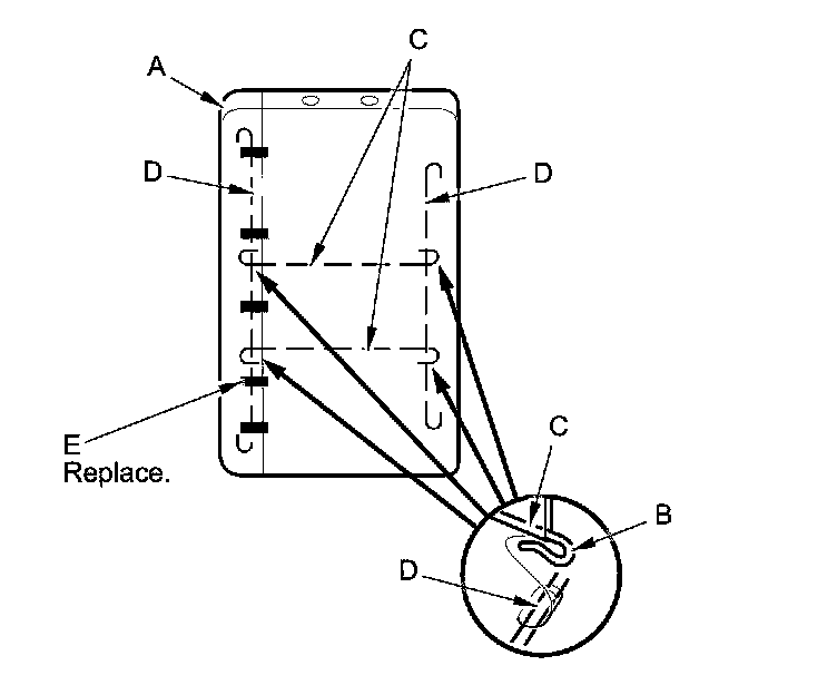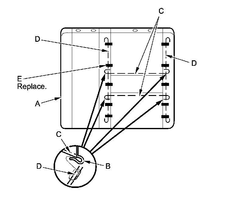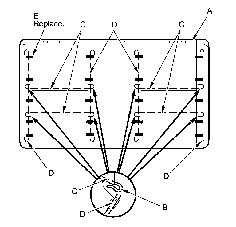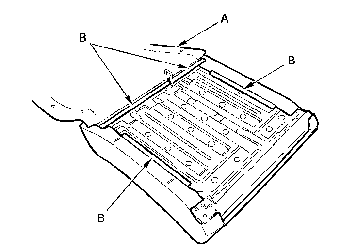 - Replace all of the upholstery rings (A) fastening the seat-back cover (B) to the pad wires (C) with new ones using commercially available upholstery ring pliers (D).