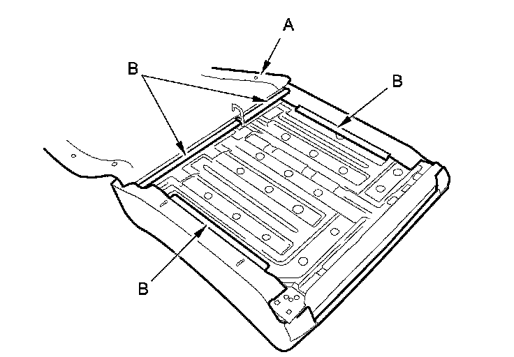 8. Pull back the edge of the seat-back cover (A) all the way around, and release the upholstery rings (B), then remove the cover.