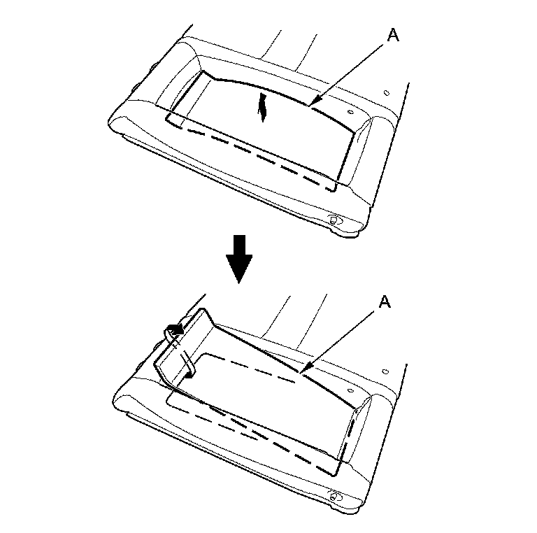 4. Left seat-back: Pull out the center area of the armrest back panel (A) to release upper edge of the armrest back panel.