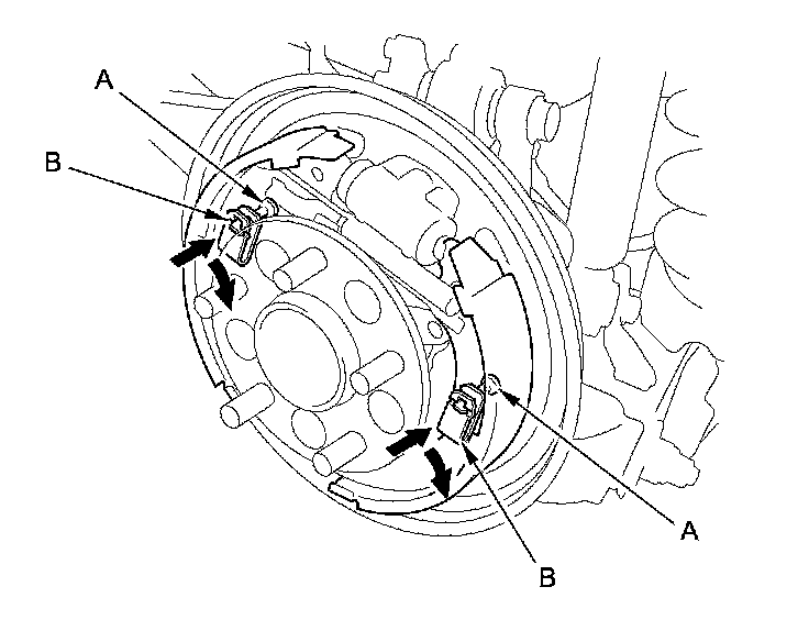 NOTE: Pinch the U-clip securely to prevent the parking brake lever from coming out of the brake shoe.
