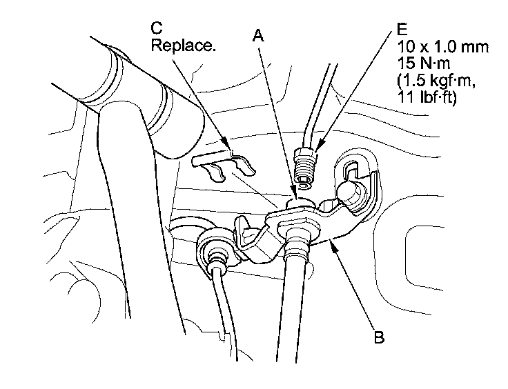 10. Connect the brake line (E) to the brake hose.