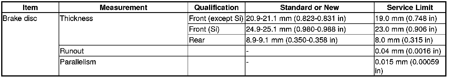 Brake Disc Specifications