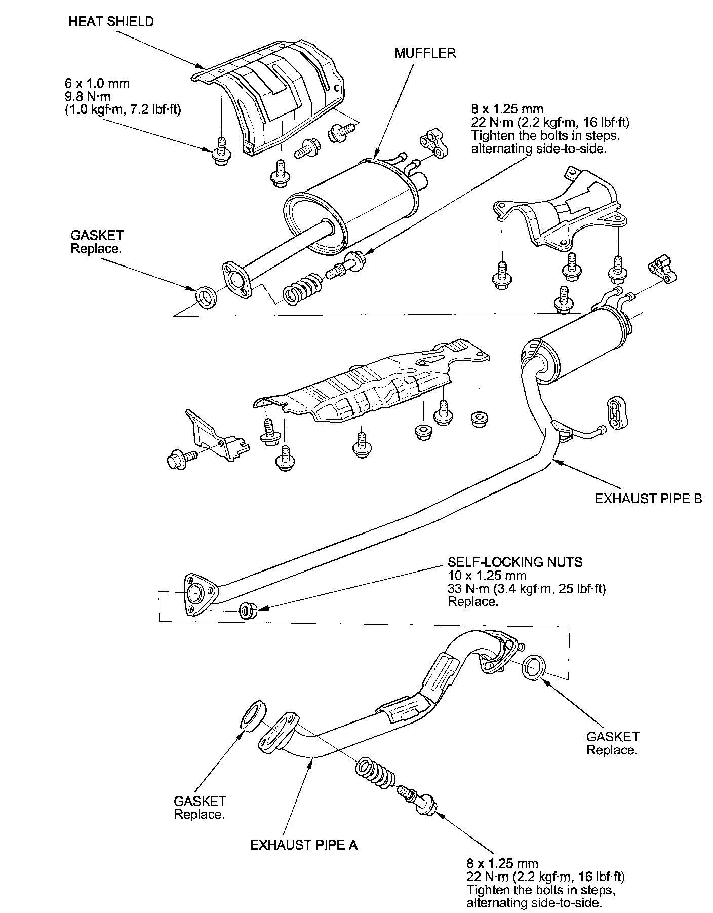 NOTE: Use new gaskets and new self-locking nuts when reassembling.