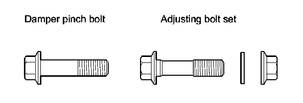 - The camber angle can be adjusted up to ±20 ' (center of tolerance) by replacing one damper pinch bolt with the adjusting bolt.