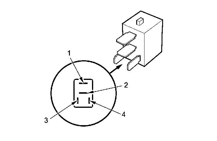 - There should be continuity between terminals No. 1 and No. 2 when battery power is connected to terminal No. 4, and body ground is connected to terminal No. 3.
