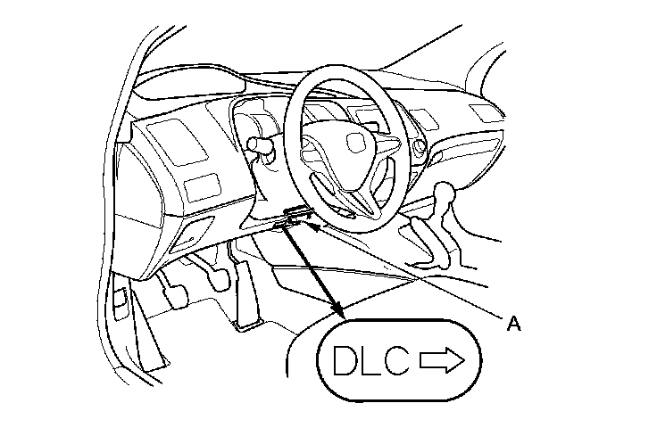 1. Connect the HDS to the data link connector (DLC) (A) located under the driver's side of the dashboard.
