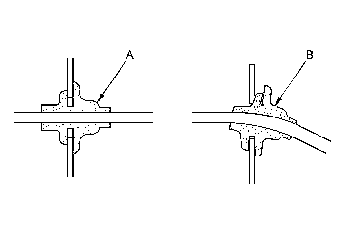 - Seat grommets in their grooves properly (A). Do not leave grommets distorted (B).