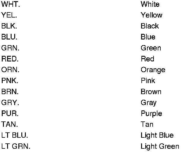 The following abbreviations are used to identify wire colors in the circuit schematics: