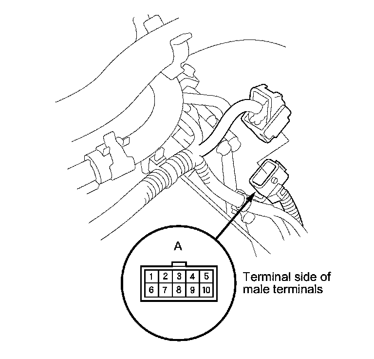 10. Remove the transmission range switch, and check the end of the selector control shaft (A).