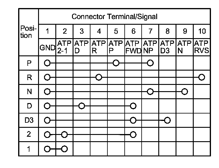3. Check for continuity between terminals at the harness connector. There should be continuity between the terminals in the following table for each switch position.