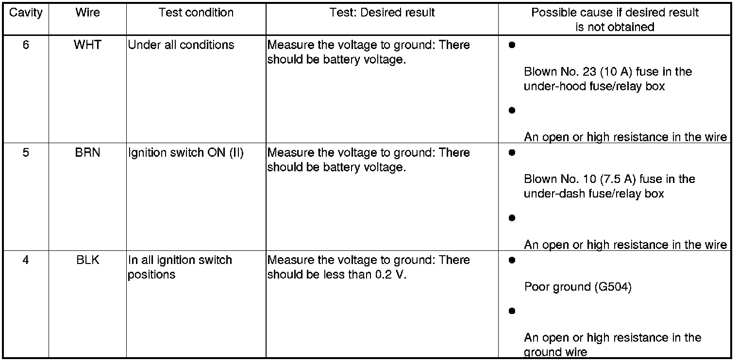 4. With the connector still disconnected, do the following input tests: