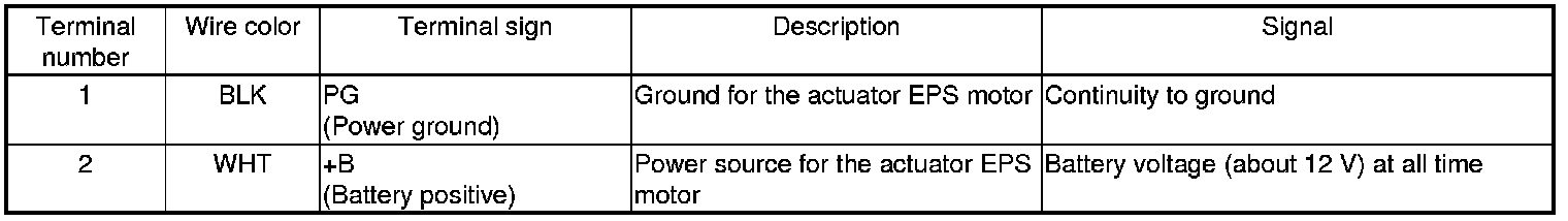 EPS Control Unit Inputs and Outputs for Connector A (2P) (Connector Disconnected)