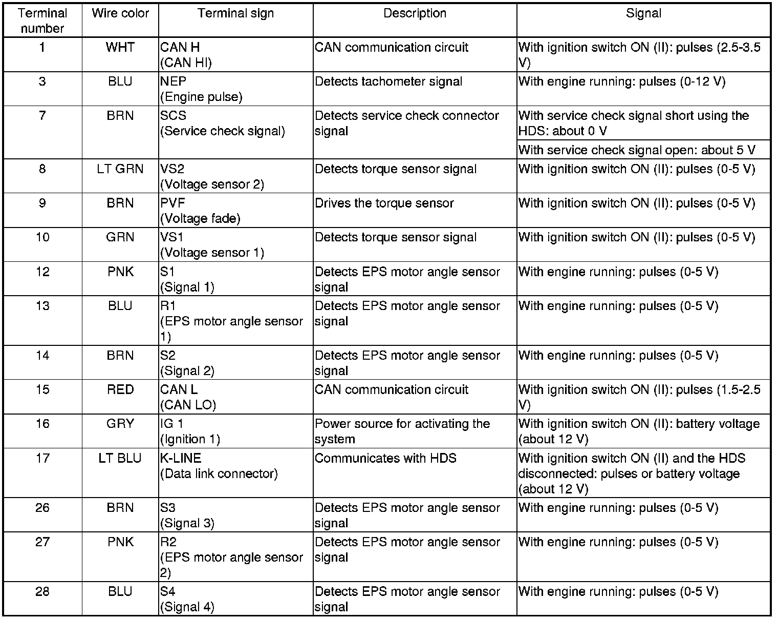 The EPS control unit controls the EPS motor by these signals:
