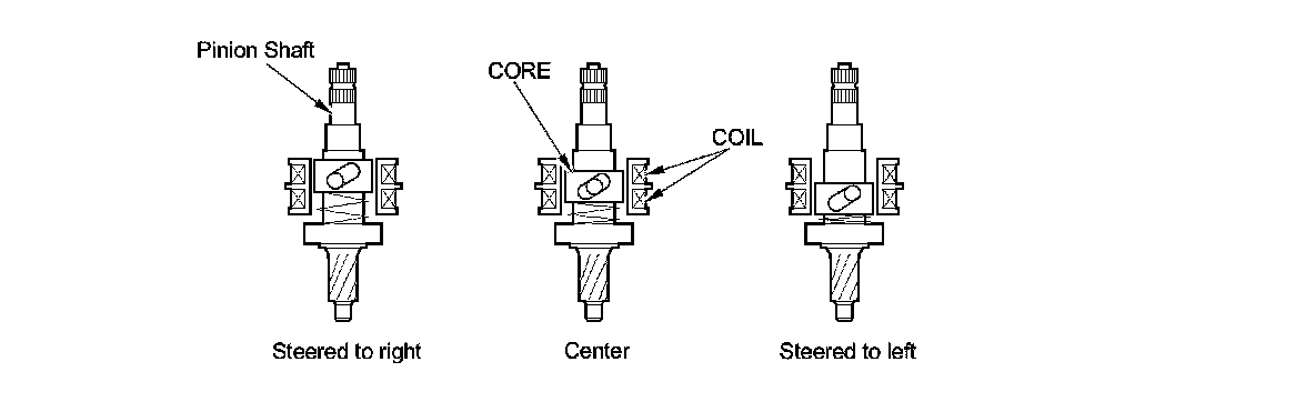 When the steering wheel is turned, inductance is changed by the movement of the core within the torque sensor. The amount this voltage changes varies with the amount of movement, and direction of the core, then is amplified by the interface circuitry of the sensor coil and output to the EPS control unit as a steering signal.