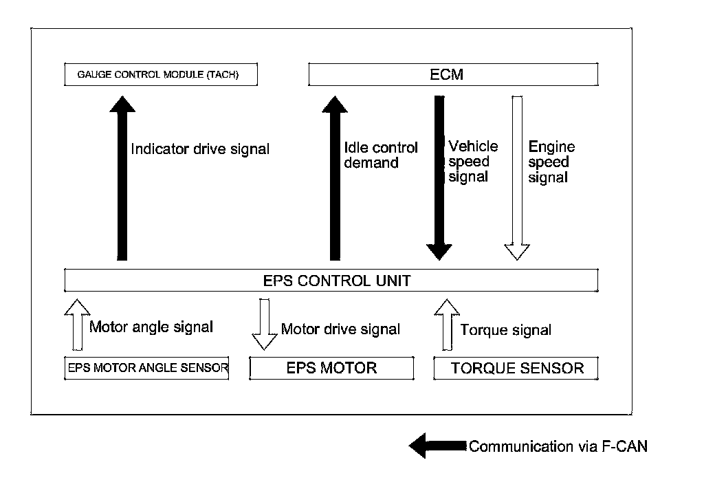 At idle or low vehicle speeds, the EPS control unit sends a signal to the ECM to increase the engine idle speed to prevent the engine from stalling.