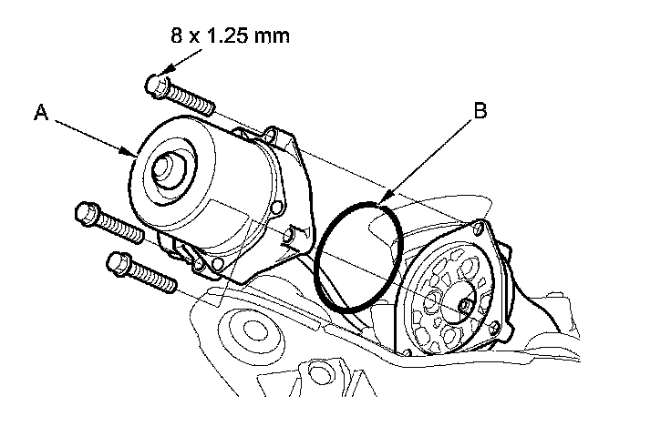 3. Remove the EPS motor (A) from the steering gearbox, then remove the O-ring (B).