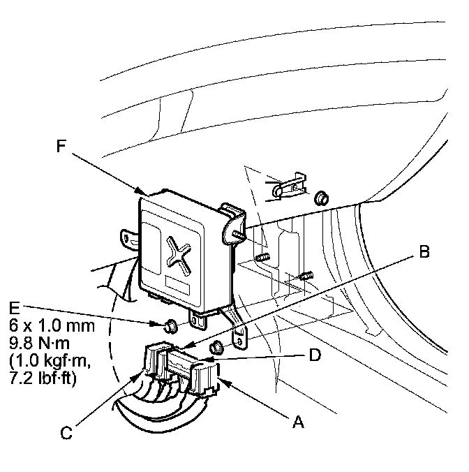 4. Disconnect EPS control unit connector A (2P), connector B (2P), connector C (2P), and connector D (28P).