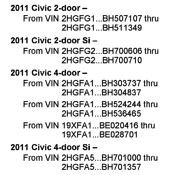 See VEHICLES AFFECTED