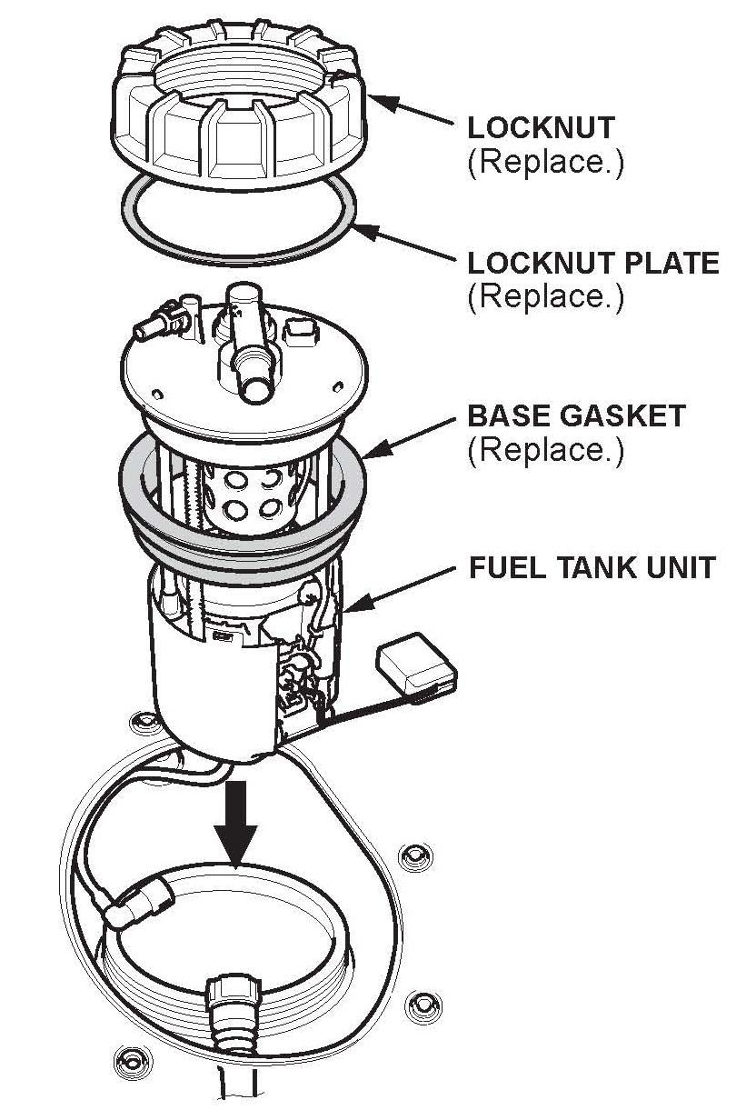 6. Reinstall the fuel tank unit. Torque the locknut to 120 N.m (88.2 lb.ft).