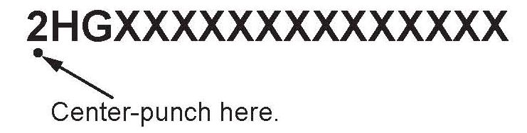 8. Center-punch a completion mark below the first character of the engine compartment VIN:
