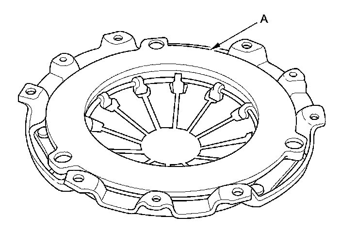 5. Inspect the fingers of the diaphragm spring (A) for wear at the release bearing contact area.
