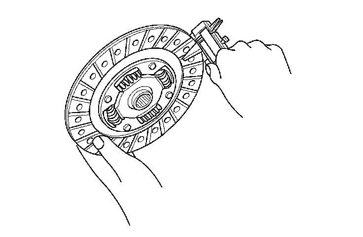 10. Measure the clutch disc thickness. If the measurement is less than the service limit, replace the clutch disc.