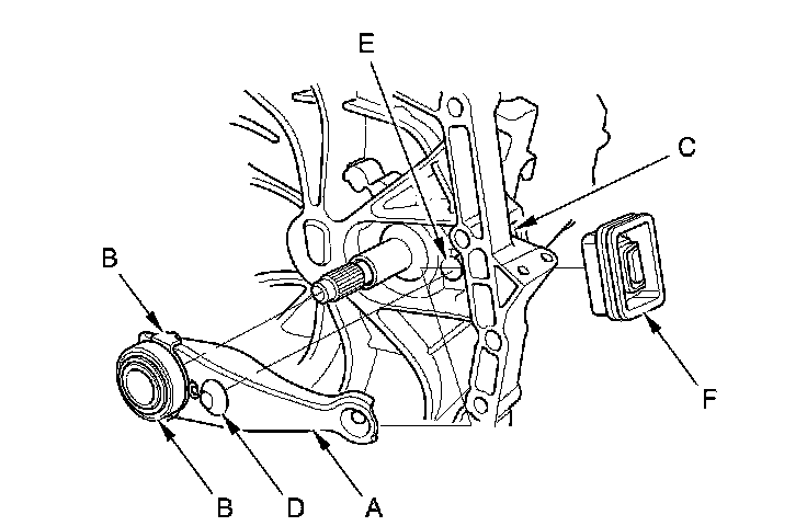 8. Install the release fork boot (F). Make sure the boot seals around the release fork and the clutch housing.